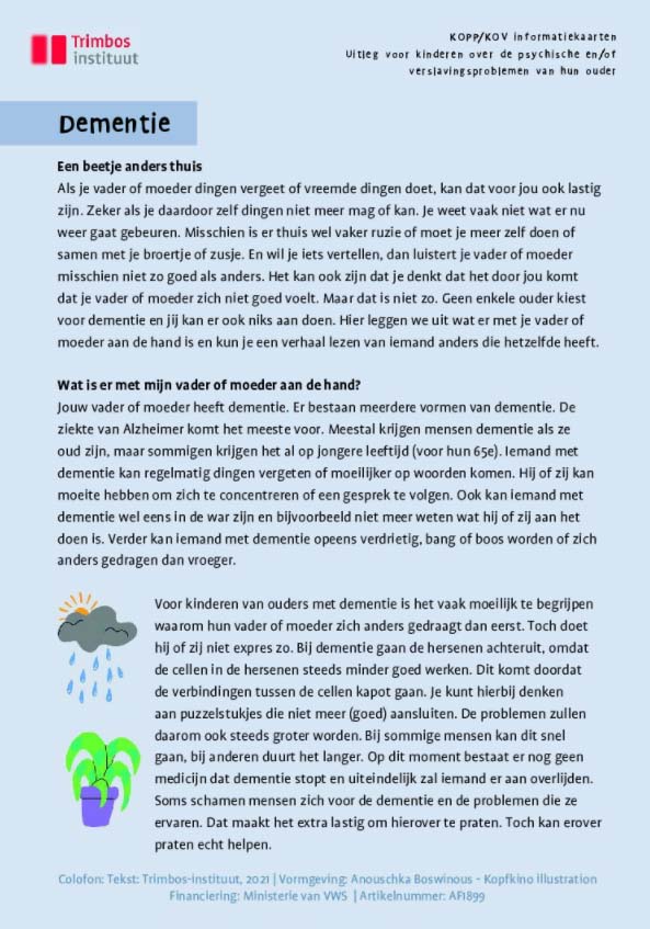 Professionals die werken met deze gezinnen kunnen meer informatie vinden over de inzet van de informatiekaarten in de Handreiking informatieboekjes KOPP/KOV.